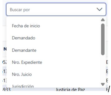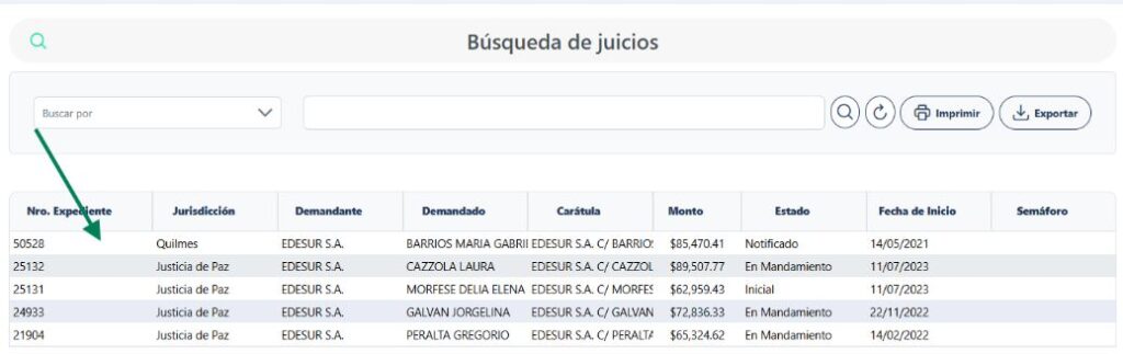 Allí podrás buscar por: Fecha de inicio, Demandado, Demandante, Nro. Expediente, Nro. Juicio, Jurisdicción, Monto, Estado, Carátula ó Semáforo.