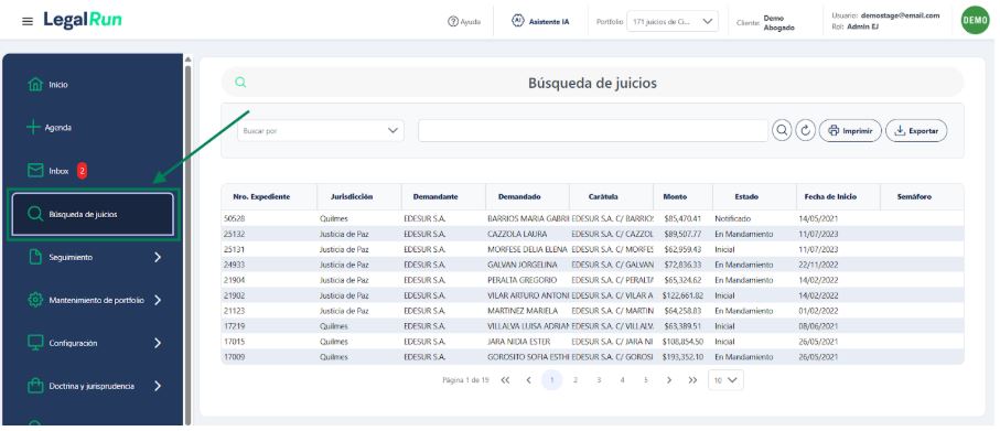 Para buscar un juicio hacé clic en “Búsqueda de Juicios” en el menú lateral