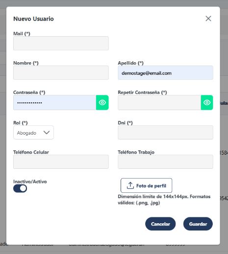 Allí podrás ingresar todos los datos del usuario y asignarle un rol: