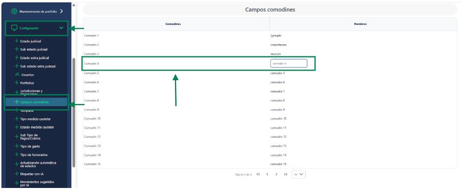 Si necesitás editar el nombre de cada campo comodín, podés hacerlo desde: