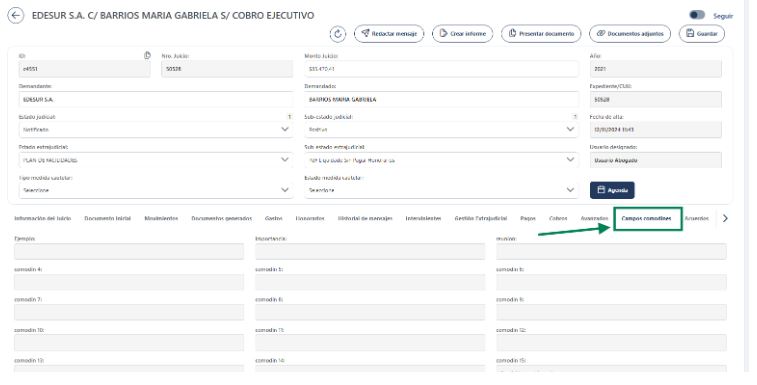 Estos campos se completan desde la Ficha de Juicio, en la solapa Campos comodines.