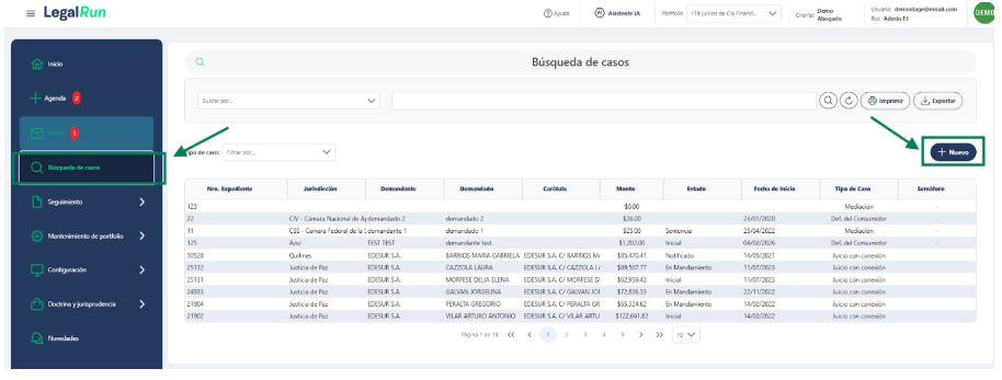 Desde la vista “Búsqueda de casos”, con solo hacer click “+ Nuevo” podés realizar la carga