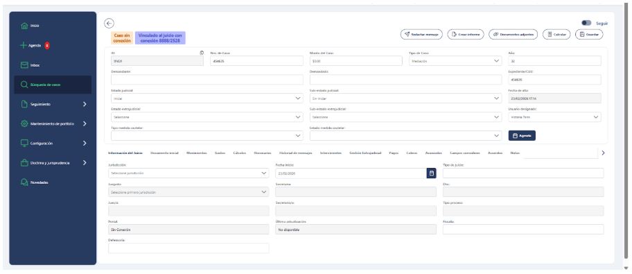 Allí en el pop up vas a poder completar los datos necesarios para vincular el caso