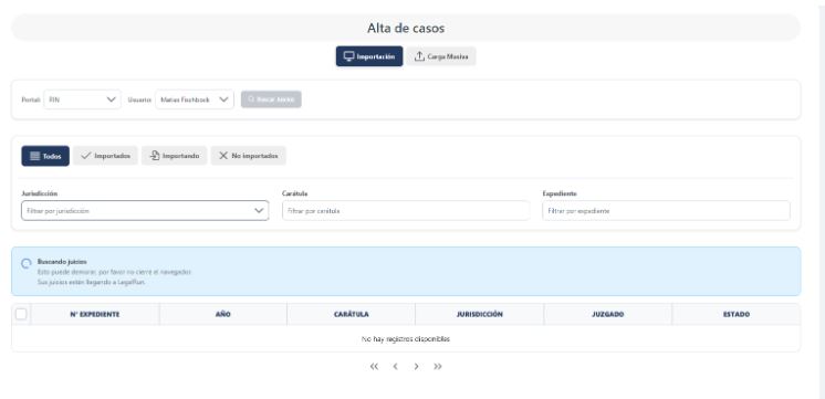 Cuando hagas clic en oficios… comienza la magia! LegalRun comenzará el proceso de búsqueda, y verás como van apareciendo tus causas.